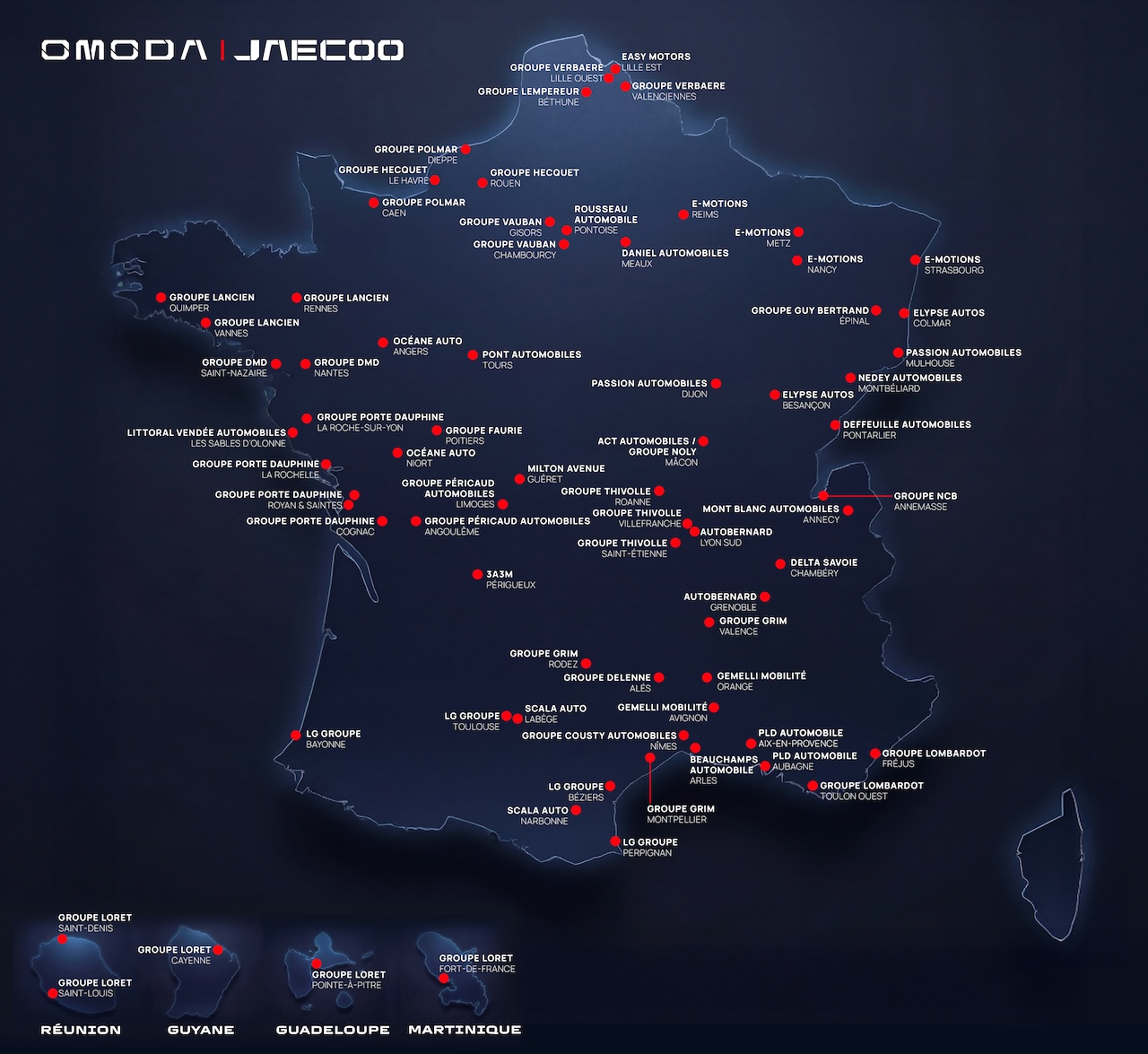 Avant même la commercialisation de ses premiers modèles, Omoda & Jaecoo a fait le choix d’une stratégie d’implantation anticipée. Dès le printemps 2026, la marque disposera ainsi de 74 concessions et réparateurs agréés répartis sur l’ensemble du territoire. Un maillage qui doit rapidement monter en puissance, avec un objectif affiché de 130 points de vente d’ici la fin de l’année. Une approche volontaire qui vise à garantir une couverture nationale immédiate, tant pour la vente que pour l’après-vente, un critère déterminant pour séduire les automobilistes français.