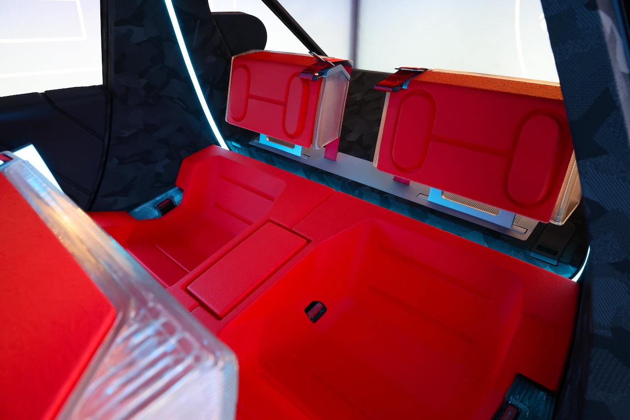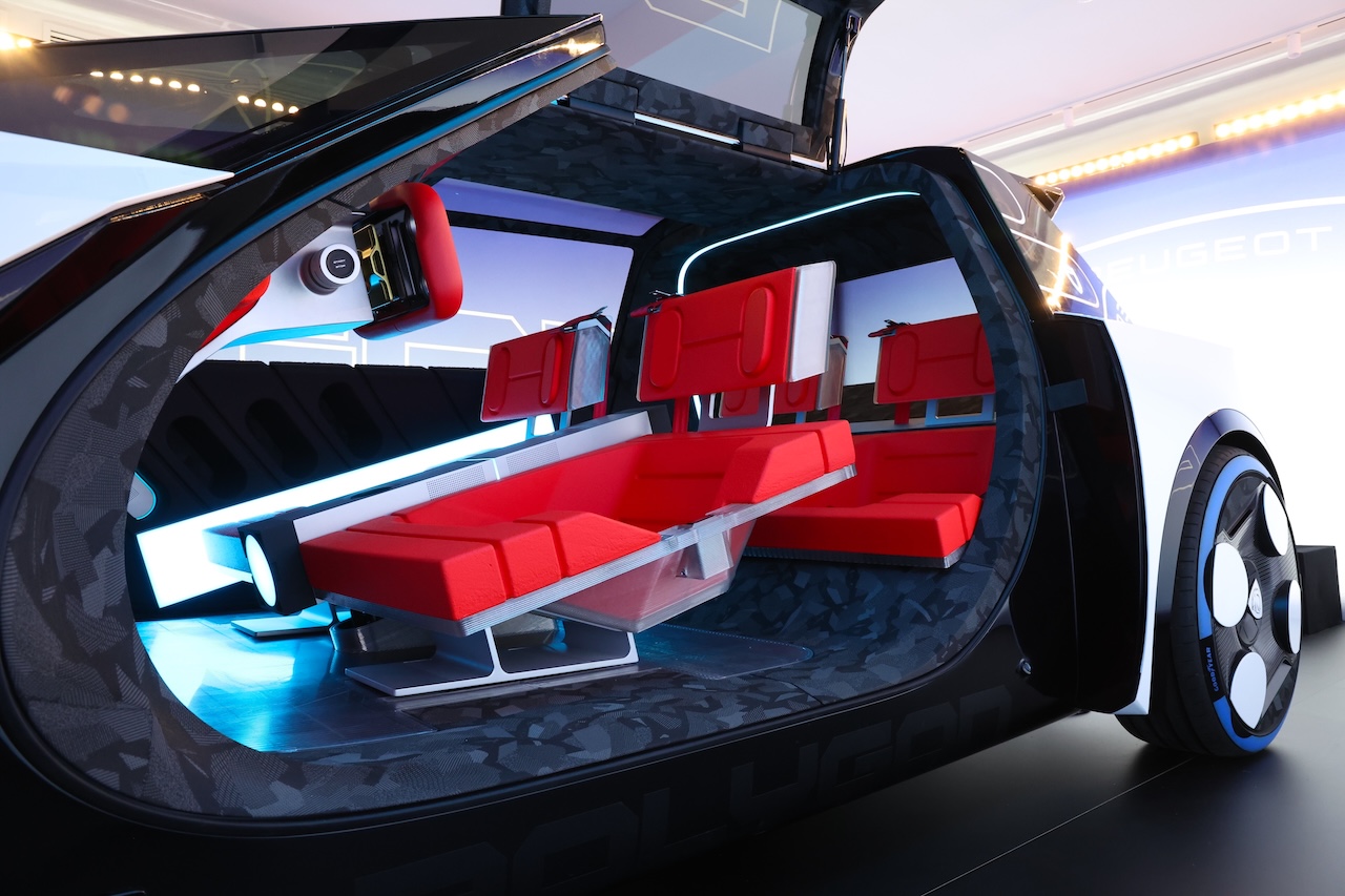 Le Peugeot Polygon se veut également un manifeste en matière d’éco-conception. Le constructeur multiplie les initiatives avec des plastiques recyclés utilisés massivement, notamment pour les coques de sièges imprimées en 3D, des textiles issus d’anciens véhicules Peugeot, revalorisés en surfaces techniques premium, des mousses de sièges monoblocs facilement remplaçables ou encore des vernis intérieurs issus du recyclage de pneus. L’architecture simplifiée, composée de moins de pièces, facilite le démontage et le recyclage. Une approche qui démontre la volonté de Peugeot d’associer design, durabilité et innovation sans sacrifier l’émotion.