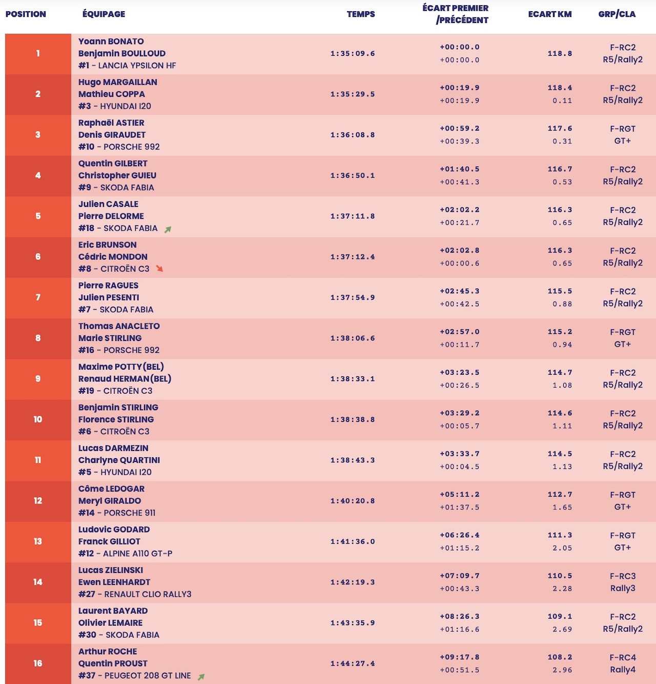 Superbe quatrième au général, Quentin Gilbert a livré une bataille intense avec sa Skoda Fabia Evo face à une concurrence plus récente. Il devance la Skoda Fabia RS Rally2 de Julien Casale, qui complète le top 5. À souligner également, la très belle 16e place au général pour Arthur Roche et sa Peugeot 208 Rally4. Après les abandons de Stéphane Lefebvre et Adrien Van Beveren, tous deux sur Toyota GR Yaris Rally2 dans la redoutable ES6, le régional Laurent Bayard a repris le flambeau local avec une solide 15e place au général au volant d’une ancienne Fabia Rally2.