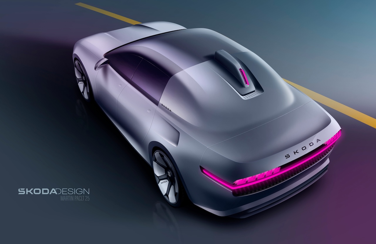 Pensé comme un véhicule électrique, le concept conserve cependant l’architecture « tout à l’arrière » de la Skoda 100, permettant un avant court et un frunk généreux. Habituellement spécialiste des signatures lumineuses, Martin Paclt a ici conçu un modèle complet, depuis les croquis jusqu’à la modélisation 3D. Le résultat est une berline élégante, moderne, et profondément inspirée de l’une des pages les plus importantes de l’histoire de Skoda, sans pour autant annoncer un futur modèle de série, cette réalisation restant à l’état de concept unique.
