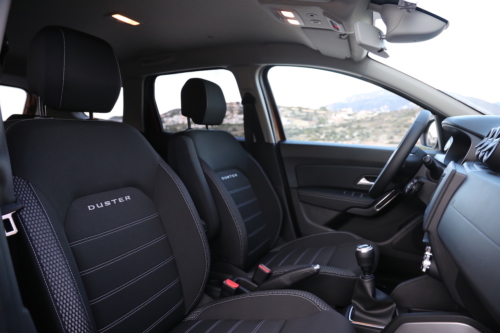 Utilisant la même plateforme technique optimisée, les trains roulants et la suspension que le Duster 1, le Duster 2 évolue néanmoins dans sa conduite grâce à une nouvelle direction électrique. Cette version turbo essence TCe 125 qui fait preuve d’un bel équilibre même en le poussant dans ses derniers retranchements avec une prise d’appui bien marquée. La direction réglable en hauteur et en profondeur est douce et précise et comme le volant est plutôt sympa dans sa tenue avec une jante épaisse, le toucher de route n’est vraiment pas désagréable. Très typé confort avec une suspension qui fait la part belle au débattement, la prise de roulis est importante mais bien gérée et comme l’assise est d’un bon niveau on ne voltige pas contre la porte. Pour Monsieur tout le monde, le rusé, le fan de bons plans, le Duster 2 est donc le beau et gros bébé idéal pour une conduite qui n’a rien de très dynamique, mais bon on achète pas une Dacia pour avoir des sensations au volant, hormis en tout-terrain car n’oublions pas que dans sa version 4×4, le Duster passe-partout là ou d’autres 4×4 restent en plan. Dans le cas de notre version d’essai au moteur turbo essence de 125 ch et 2 roues motrices, on a trouvé un compagnon idéal qui manque tout de même d’un poil de caisse lorsqu’on le sollicite, petite cylindrée oblige.