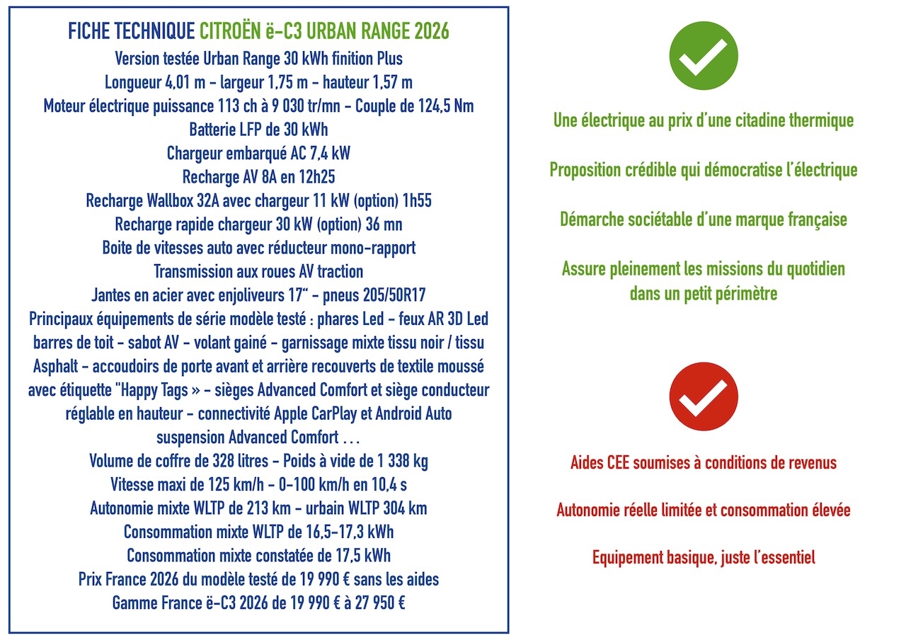 Dans un contexte de carburants aux prix élevés et d’un parc automobile français vieillissant, Citroën lance une déclinaison abordable de sa ë-C3. Avec la ë-C3 Urban Range, affichée à un prix pouvant descendre jusqu’à 12 990 € dans les meilleures conditions d’aides CEE et de primes Citroën, la marque française ne promet pas la lune, mais l’essentiel. Et c’est peut-être exactement ce qu’attendent les automobilistes pour basculer vers l’électrique.