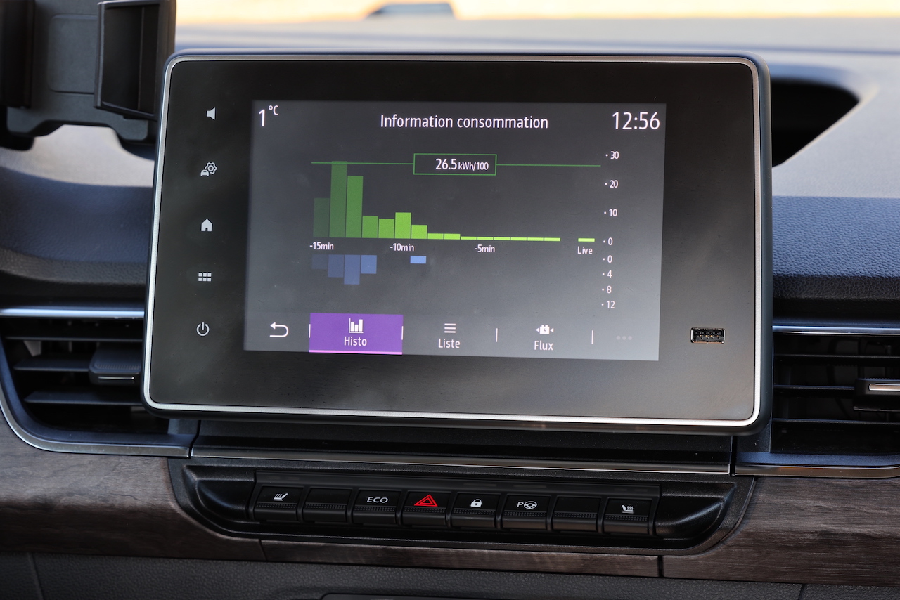 Avec sa batterie de seulement 45 kWh alors qu’une Zoe dispose d’une batterie de 52 kWh en charge utile, le rayon d’action du Kangoo E-Tech Electric est extrêmement limité et de ce fait il perd un grand intérêt pour les familles qui font des longs trajets. Un Lille-Lyon (750 km) va nécessiter pas moins de deux recharges avec les aléas de disponibilité et de fonctionnement des bornes et si on pousse jusque dans le Sud, prévoir au minimum une nouvelle recharge. Bon courage et au moins on découvre les aires d’autoroute en prenant café sur café. Annoncé avec une autonomie de 285 km en cycle mixte et jusqu’à plus de 400 km en usage urbain, grâce à la régénération, le Kango E-Tech Electric fait payé au prix fort, à partir de 37 500 € avec le chargeur embarqué de 11 kW, son électrification. Concrètement, ça fait un sacré budget pour une auto incapable de parcourir 200 km comme lors de notre essai dans les environs du château de Chantilly. Un essai en mode « bon père de famille » sans que l’on sollicite trop la mécanique, de peur que l’autonomie de la batterie fonde comme neige au soleil, ce qui fut le cas malheureusement. A sa décharge, il faisait 0° en ce mois de décembre et sur notre relevé de consommation qui affichait 26,5 kWh, le chauffage a consommé pas moins de 6 kWh, ramenant la consommation réelle du moteur à +/- 20 kWh/100 km. Sans sortir de Polytechnique, un simple calcul sur cette base permet de parcourir théoriquement +/- 250 km et sans chauffage, ce qui est super cool en plein hiver avec des enfants. Comme à la maison en pleine crise énergétique, il va donc falloir faire des efforts et baissant la température dans l’habitacle tout en gardant une doudoune sur le dos, le cache-nez et pourquoi pas des gants. Bon on en rajoute un peu, mais nous ne sommes pas loin de la vérité.