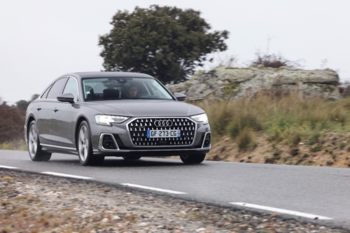 Le segment des berlines n’a plus la cote et même les grandes routières allemandes sont en perte de vitesse au profit des SUV. Malgré cette émergence de cette génération haute sur pattes, Audi, BMW et Mercedes conservent dans leur gamme une grande berline routière luxueuse. Pour la marque aux anneaux il s’agit de l’A8, un vaisseau amiral bourré de technologie, imposant sur la route car long de plus de 5 mètres, et qui se conduit comme une simple compacte grâce à l’efficacité de son châssis et 4 roues directrices. Avant que cette A8, à l’image de la prochaine i7 de BMW, bascule dans l’électron, Audi propose une mise à jour esthétique, mais essentiellement technique et technologie de cette A8 de 4ème génération. La plus grosse évolution de ce millésime est technique avec l’introduction d’une nouvelle motorisation hybride-rechargeable qui couple un moteur thermique V6 3 litres avec un moteur électrique pour une puissance combinée de 462 ch. Si la marque compte écouler majoritairement cette nouvelle motorisation TFSi e sur le marché, le bloc V6 3 litres TDi de 286 ch qui a fait le gros des ventes sur les précédentes générations, reste d’actualité pour les gros rouleurs.