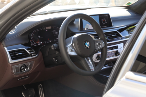 Cette version 730d xDrive fait appel à un 6 cylindres remarquablement insonorisé de 286 ch et 650 Nm de couple. Les différentes aides à la conduite sont légion avec la commande gestuelle, le stationnement à distance, la conduite prédictive ou encore le pilote « automatique » hyper efficace qui permet une conduite quasi autonome selon la législation en vigueur actuellement en Europe. Loin d’un gadget « de plus », la clef intelligente de la nouvelle BMW Série 7 peut être utilisée comme télécommande au système de stationnement à distance. Ainsi, une Série 7 peut sortir « seule » de sa place de stationnement, sans conducteur à bord, si cela se révèle nécessaire. Pour faire forte impression en quittant le restaurant, c’est la classe !
