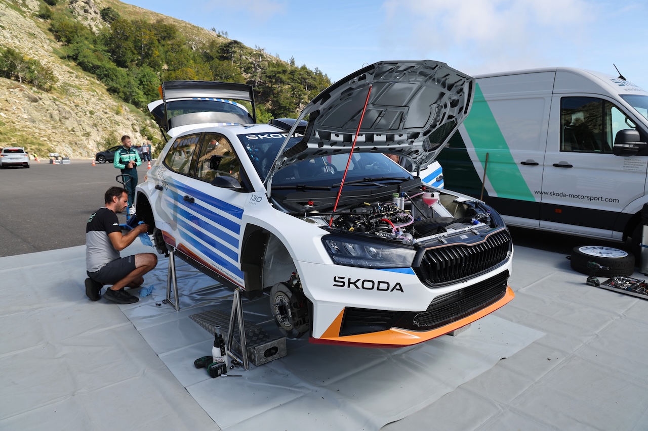 Sur ce ruban d’asphalte corsé et flambant neuf (merci à Monsieur le Maire de Ghisoni pour la gentille attention), les virages s’enchaînent sans répit. Le train avant est d’une précision chirurgicale, l’auto s’inscrit à la corde avec une facilité déconcertante. Notre pilote Skoda du jour, le jeune Estonien Robert Virves protégé de son compatriote champion du monde, Ott Tanak, ne pousse pas sa monture dans ses derniers retranchements, mais ça va déjà très vite et la Fabia enroule les virages avec une facilité déconcertante. Les freinages, mordants et puissants, permettent de repousser toujours plus loin les limites. À la sortie des épingles, la motricité n’est jamais prise en défaut et la voiture semble coller au bitume. Sur ce billard asphalté de quelques kilomètres, les suspensions encaissent les passages dans les cordes sans la moindre secousse, mais ce qui impressionne le plus, c’est cette facilité de conduite. La Fabia RS Rally2 ne cherche pas à dominer son pilote, elle l’assiste, le pousse à aller plus vite, sans jamais trahir la confiance. Elle est juste géniale et on a envie d’en avoir une dans son garage même si son tarif d’environ 250 000 € HT peut refroidir les ardeurs de nombreux passionnés, mais c’est le prix de la victoire et du plaisir.