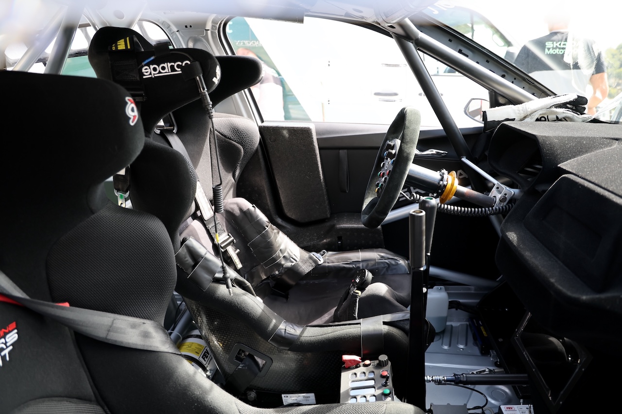 Sous le capot de cette Fabia bodybuildée dont la coque a fait l’objet d’un travail d’expert avec l’intégration d’un arceau cage imposant, on trouve un bloc 4 cylindres 1.6 turbo dérivé du 2.0 TSI du groupe Volkswagen que l’on trouve sous les capots de l’Octavia RS mais aussi de la VW Golf GTi ou encore de l’Audi S3. Avec près de 290 ch et 430 Nm de couple dans cette version WRC2, une boîte séquentielle à 5 rapports, une transmission intégrale mécanique et des trains roulants spécifiques, tout ici respire la performance. Pesant à peine 1 230 kg sur la balance, on sent bien que chaque détail est pensé pour gagner des dixièmes et disons même des secondes.